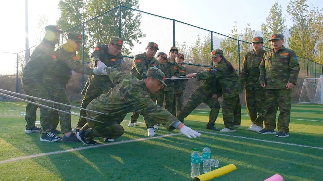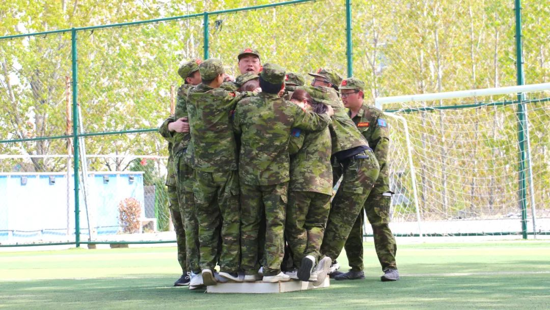 開訓(xùn)前,在破冰啟航環(huán)節(jié)——【智勇通關(guān)】項目中,每組選一個大魔王來防守別隊,該隊隊員依次挑戰(zhàn)大魔王,石頭剪刀布定輸贏,贏了直接通過,輸了轉(zhuǎn)一圈,回來接著挑戰(zhàn),再輸即增加圈數(shù),直到全部隊員通過。大家把團(tuán)隊當(dāng)成了自己的“城堡”,在“對抗魔王”中,每個隊員都拼盡全力,期待被幸運女神光顧,期待團(tuán)隊能盡早完成任務(wù),大家的歡笑聲、喝彩聲灑滿了訓(xùn)練場。