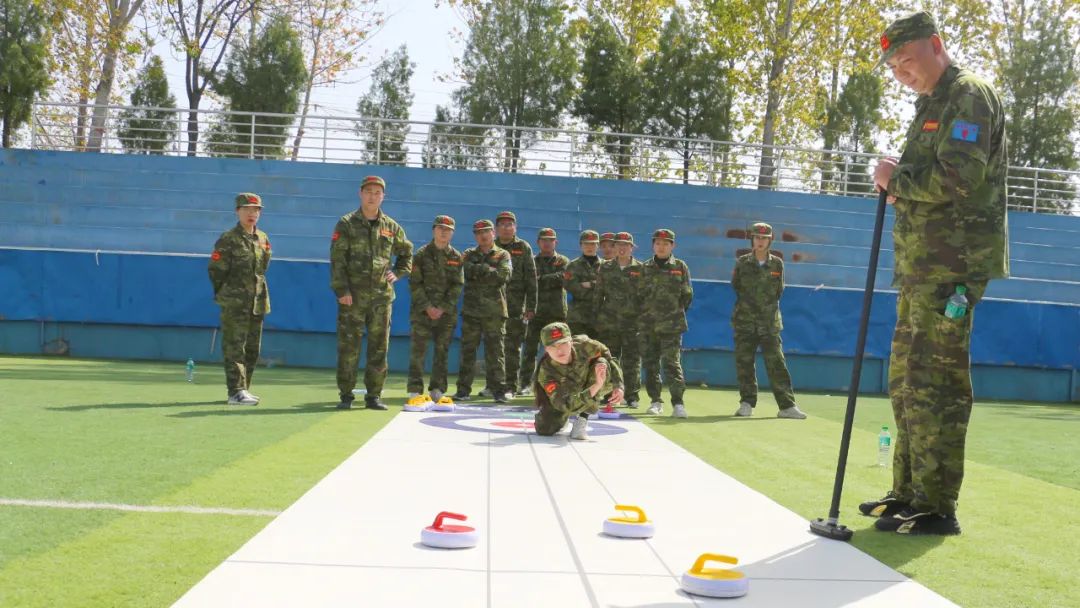 在【旱地冰壺】項目中,八個小組的隊員們一邊商榷對敵戰(zhàn)術(shù),一邊進(jìn)行任務(wù)分配。隨著一聲哨響,兩個賽隊同時開賽。隊員們?nèi)褙炞?、凝神靜氣,向前邁步?jīng)_刺,揮動手臂擲壺,冰壺按照隊員們設(shè)想的路線擊打到對方的冰壺,使其滑出得分圈并穩(wěn)穩(wěn)地停留在中心點,成功得分,大家歡呼雀躍,圍觀隊員們也紛紛叫好,掌聲、歡呼聲此起彼伏,好不熱鬧。