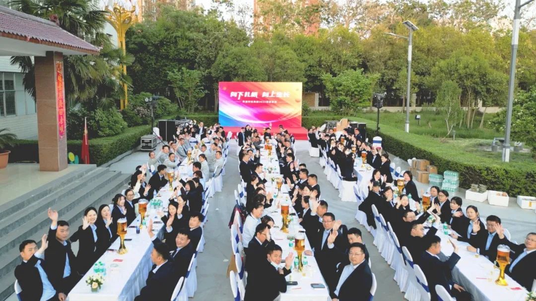 隨著一陣陣歡呼聲,家宴正式拉開序幕,董事長楚科奇及集團(tuán)管理層共同登臺祝酒,為這個美好的歡聚時刻,與所有家人舉杯慶祝。現(xiàn)場華燈璀璨,笙歌高揚(yáng),家人滿座,笑語滿堂。